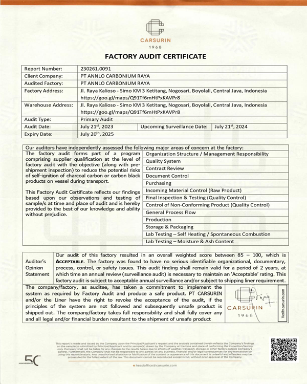 | 1. Bill of Loading (Original or Telex Released) 2. Invoice 3. Packing list 4. Certificate of Origin 5. Export Declaration | 1. Self Heating Test (SHT) 2. Result of Analysis (ROA) 3. Factory Audit (FA) 4. Manufacturer declaration 5. Manufacturer’s material safety data sheet 6. Weathering report Vanning Certificate 7. Fumigation certificate 8. Phytosanitary certificate 9. ISF Form (for the US) |